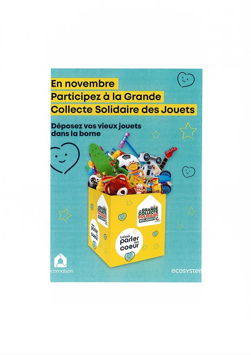 La Communauté de communes des Vallées du Clain organise une collecte de jeux et de jouets d'occasion (en bon état) du 1er au 30 novembre 2025.