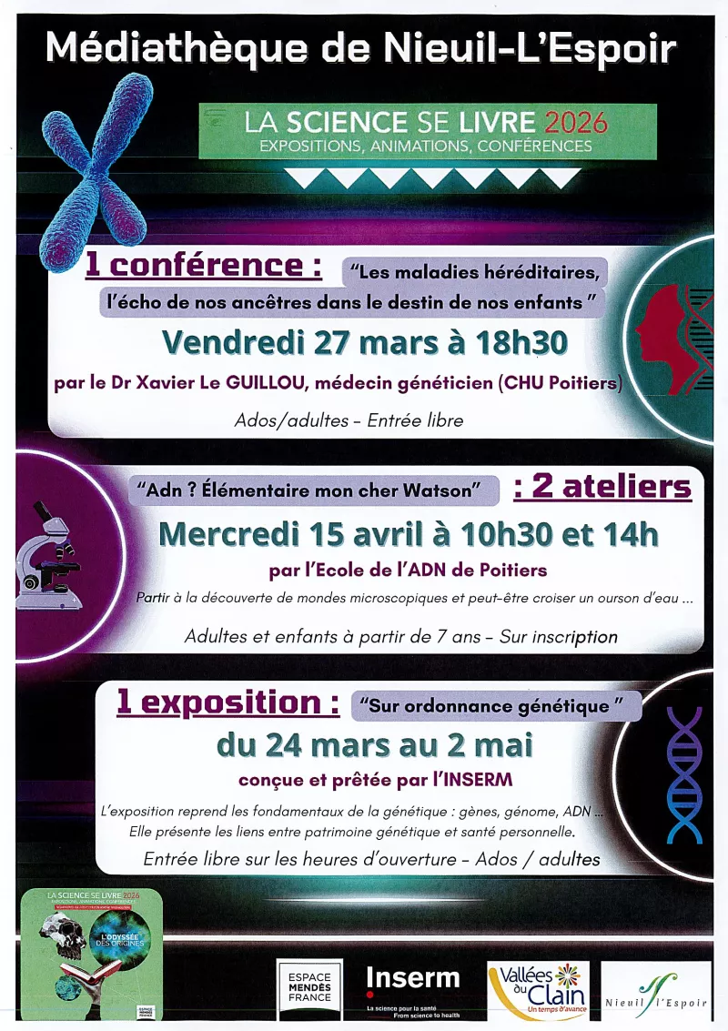 A l'occasion de "l'Odyssée des origines" en partenariat avec l'Espace Mendès France, la médiathèque de Nieuil L'Espoir vous propose trois temps forts.
