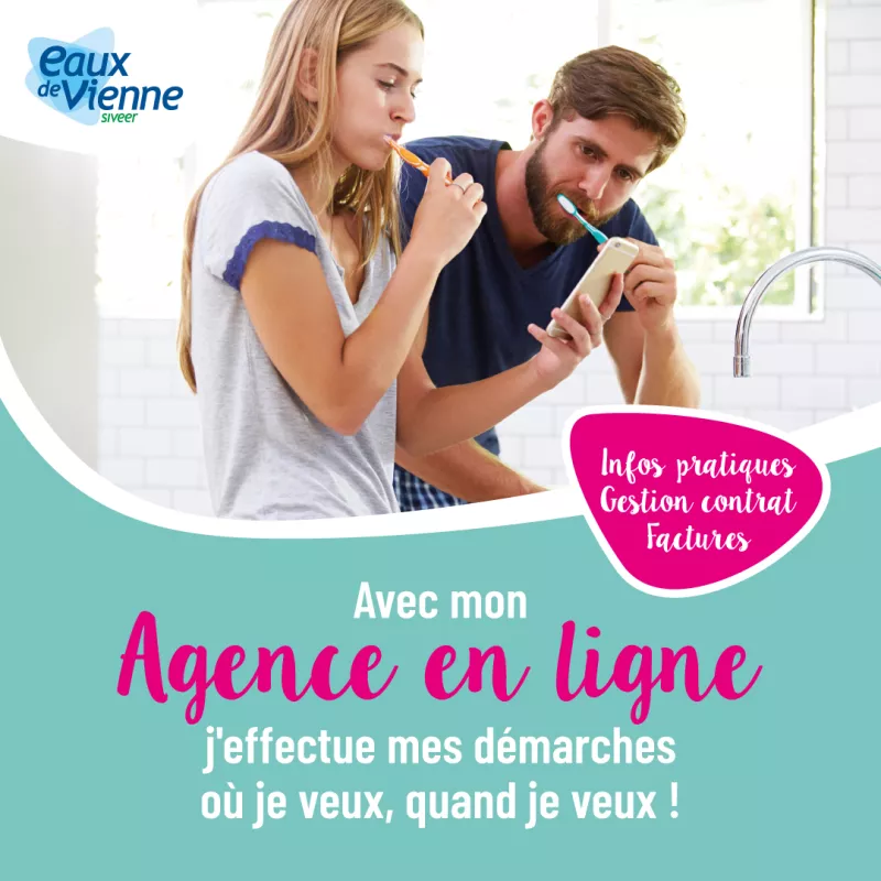 L’Agence en ligne d’Eaux de Vienne est un espace client accessible via smartphone, tablette ou ordinateur. Les démarches des abonnés sont simplifiées ainsi que le traitement de leur dossier.