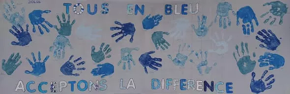 A l'occasion de cette Journée Mondiale (initiée par l'Association Autisme France), les élèves de la classe de Grande Section de Maternelle et la classe Bleue (élèves autistes) de l'école Jacques Charpentreau à Nieuil L'Espoir ont réalisé une fresque. Le but pour les élèves, est d'affirmer la nécessité d'accepter la différence ; et plus particulièrement à l'école.